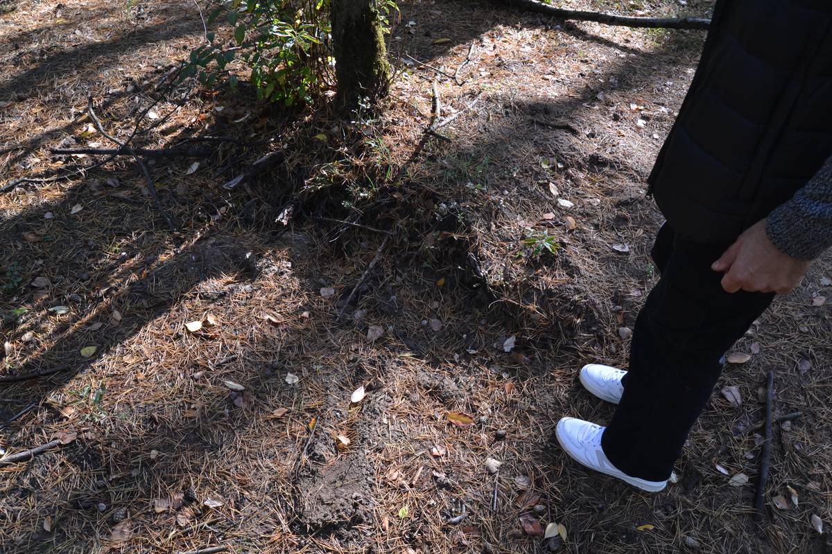 Fotografie místa nálezu rakety, která se dostala na veřejnost. Raketa se zabořila hluboko do země.