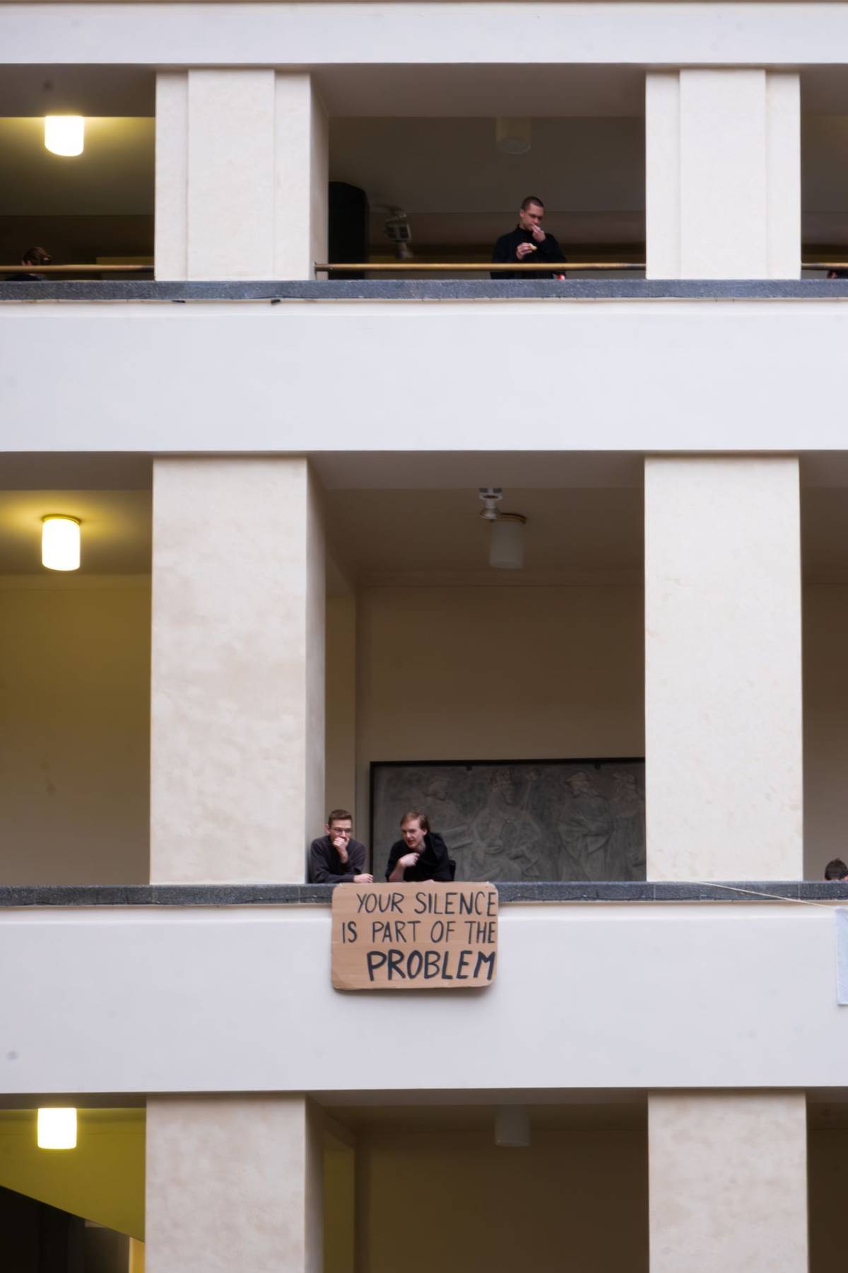 Na umělecký zásah ve vstupní hale naváže dnešní komentovaná prohlídka a třídenní konference, která bude hostit architekty, teoretiky výtvarného umění, pedagogy nebo sociology.