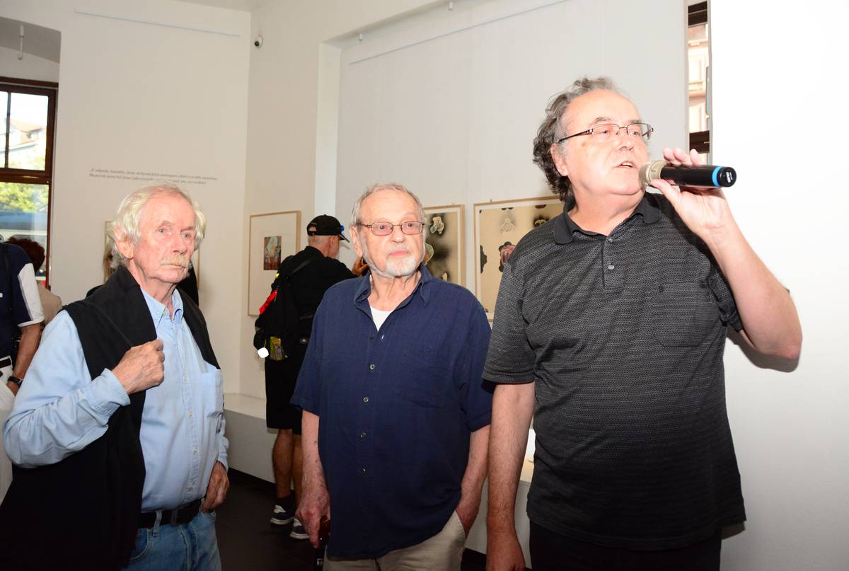 Kurátor Karel Srp (vpravo) na vernisáži výstavy
