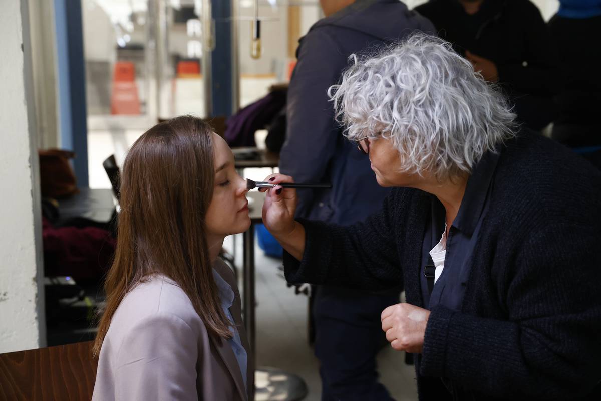 Natáčení filmu Její tělo. Denisa Barešová se chystá na záběr.