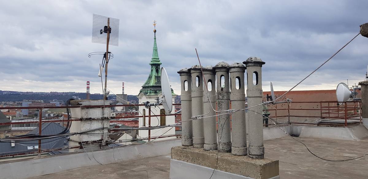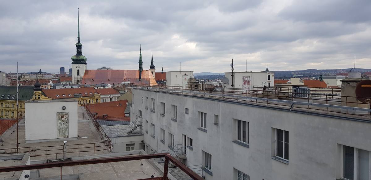 Plochá střecha domu nabízí neobvyklé pohledy na Brno. Ani ta bohužel není přístupná.