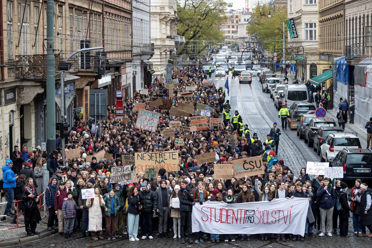 V rámci celorepublikové stávky ve školství se 27. listopadu 2023 konal protest studentské iniciativy Studenti pro školství na podporu učitelů a proti změnám, které ministerstvo školství navrhuje ve financování škol.