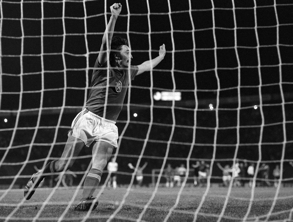 Mistrovství Evropy ve fotbale 1976 v Jugoslávii, finále v Bělehradě: Československo vs. Spolková republika Německo, penaltový rozstřel, Antonín Panenka (ČSR) jásá po vstřelení gólu na 5:3, 20. června 1976