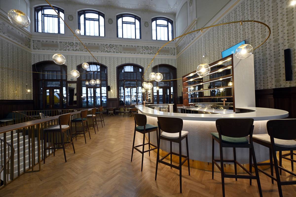 Zrekonstruované prostory historické Fantovy budovy na hlavním nádraží v Praze. Na snímku kavárna.