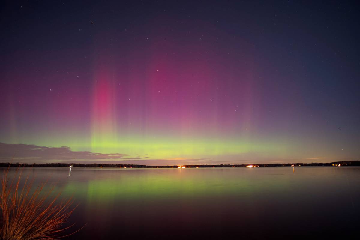 Polární záře nad městem Bad Zwischenahn v Dolním Sasku, 25. listopadu.