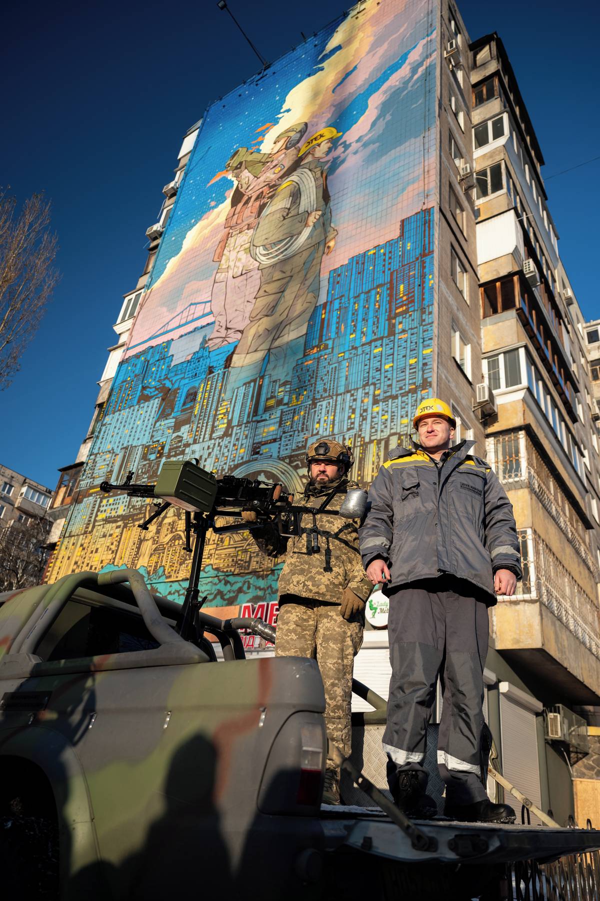 „Obránci světla.“ V centru Kyjeva byl 30. listopadu 2023 odhalen nový mural, který je poctou ukrajinským jednotkám protivzdušné obrany, které ničí ruské rakety a drony v ukrajinském vzdušném prostoru. A také všem energetikům, kteří bojují s následky těchto útoků, aby zabránili výpadkům proudu.