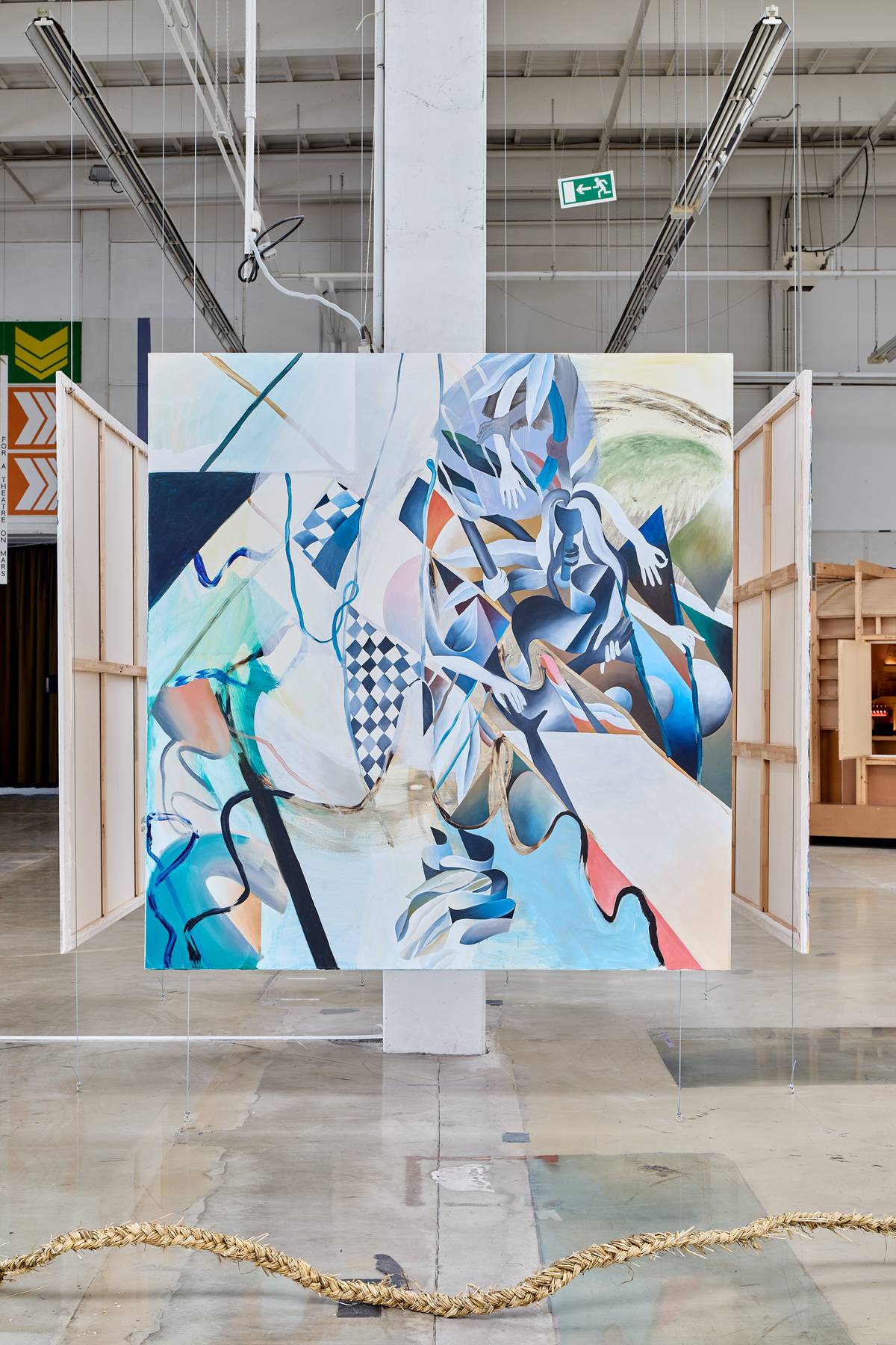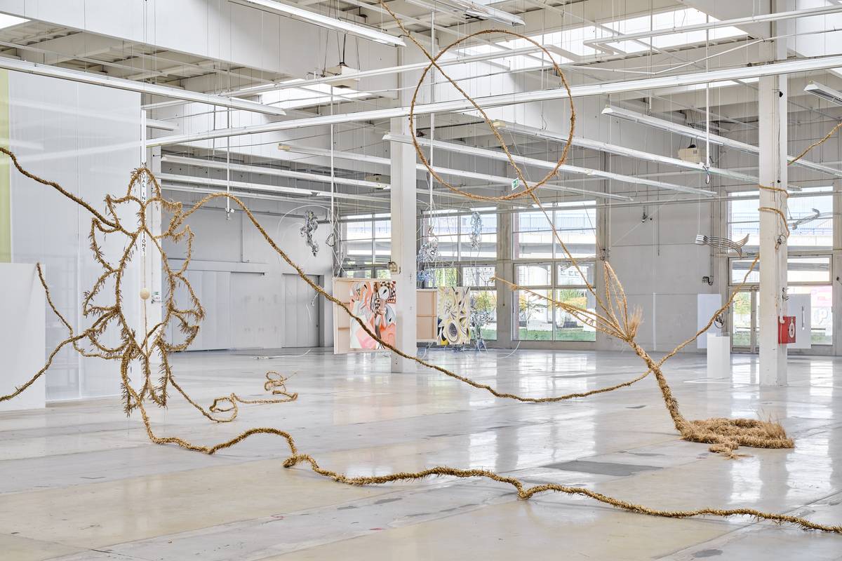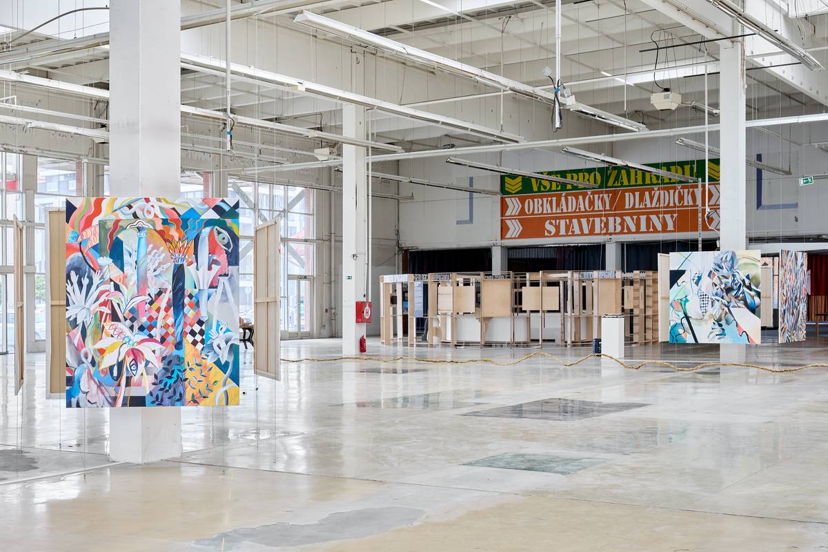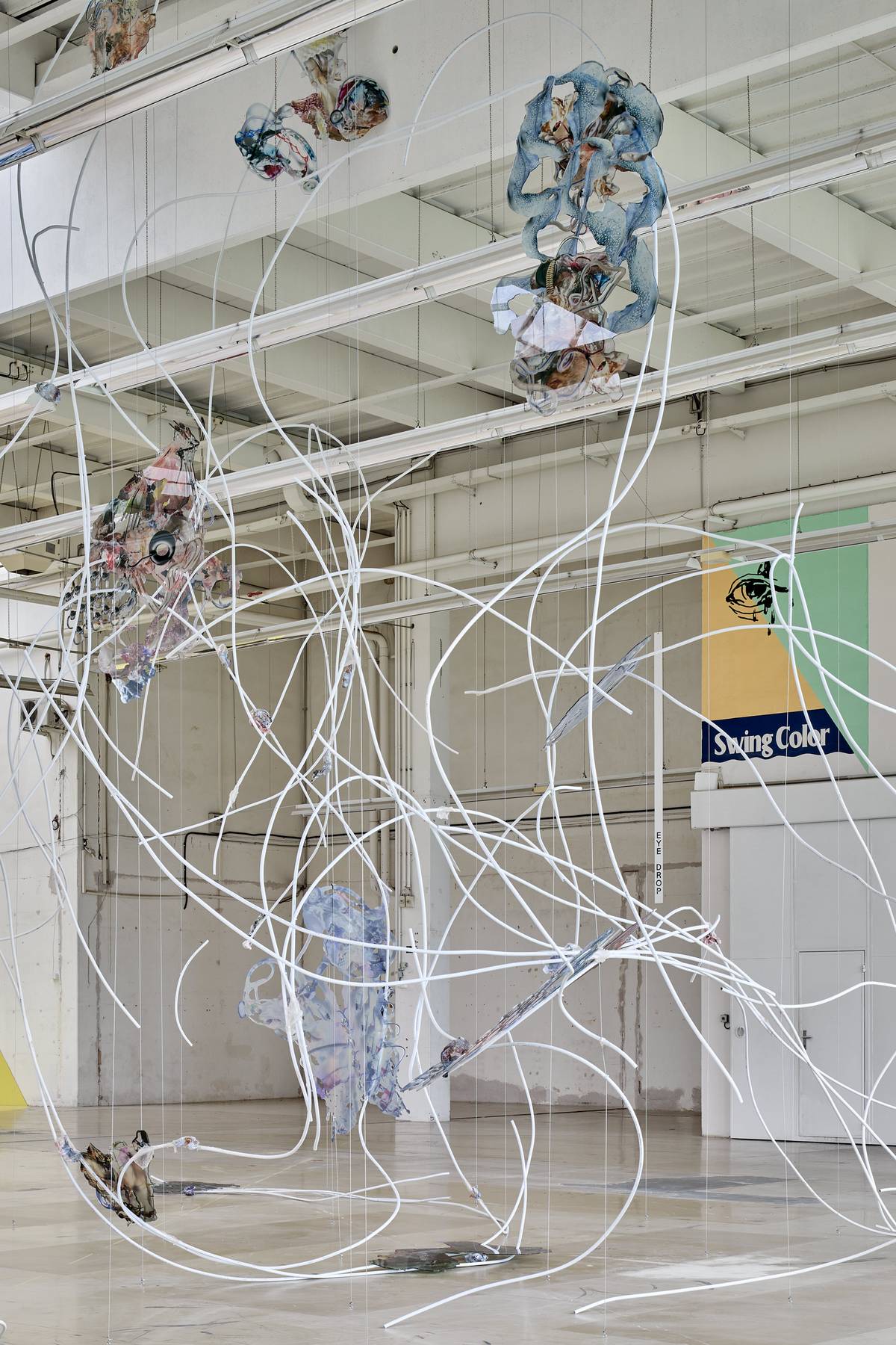 Takto vzniklé obrazy jsou ve výstavním prostoru bývalého hobbymarketu zavěšené a propojené pomocí bílých trubek. Připomínají organismus.