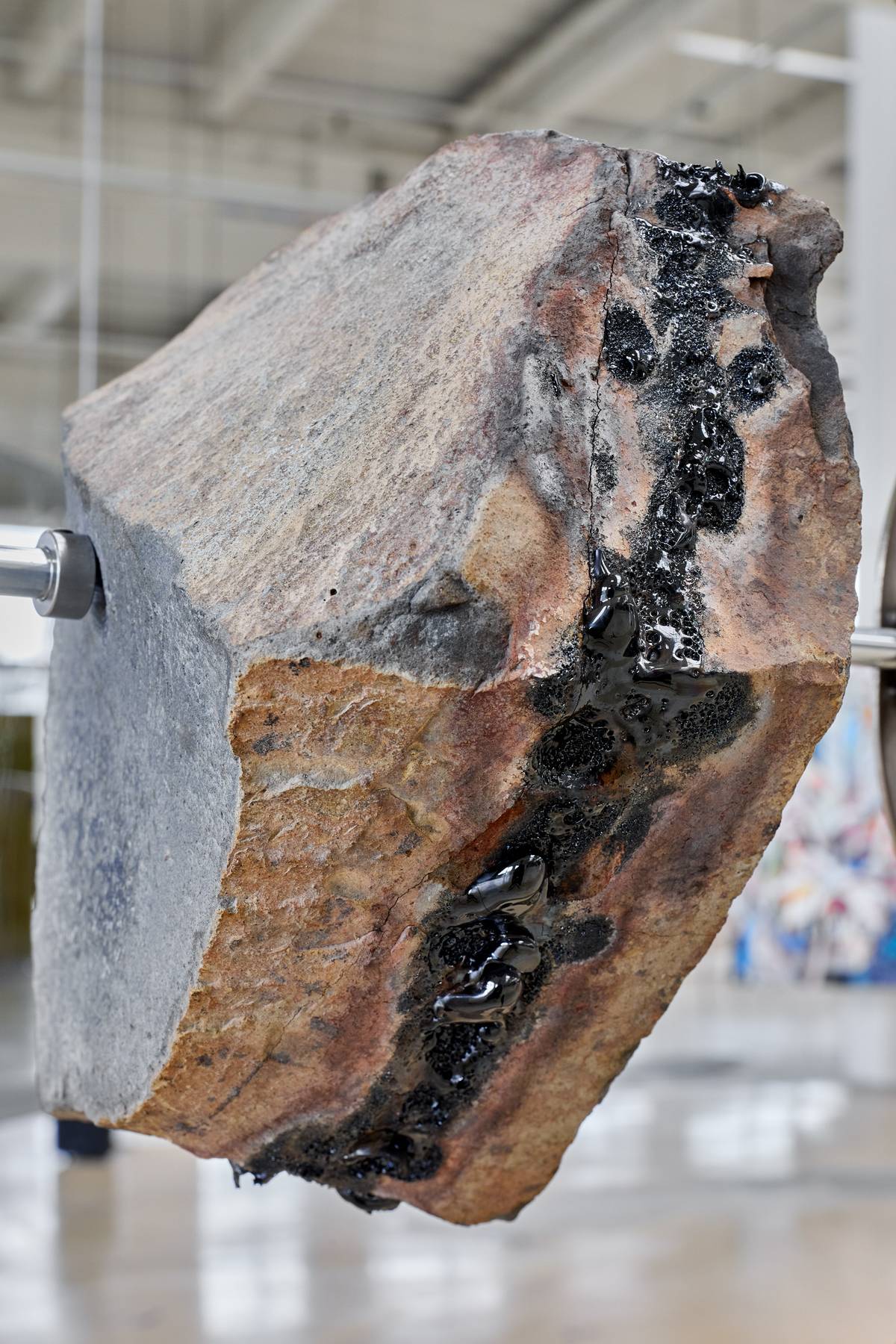 Detail kamene, do kterého Brůha pomocí svého díla Inter Solaris vypálil paprsky slunce. Brůha si dlouhodobě klade otázky nad významem epochy lidského rodu.