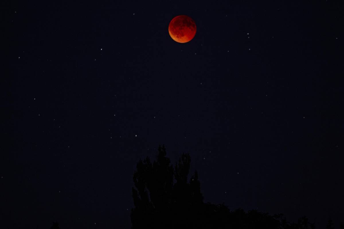 Krátce po západu Slunce se začal na východním obzoru rýsovat nevýrazný červenavý měsíc. Fotoaparát byl nastaven a začala astronomická podívaná roku.