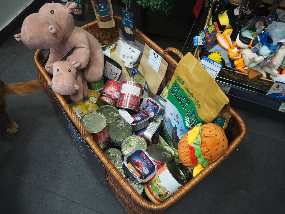 V ostravském obchůdku Dogbarf srovnávají věci ze sbírky do koše.