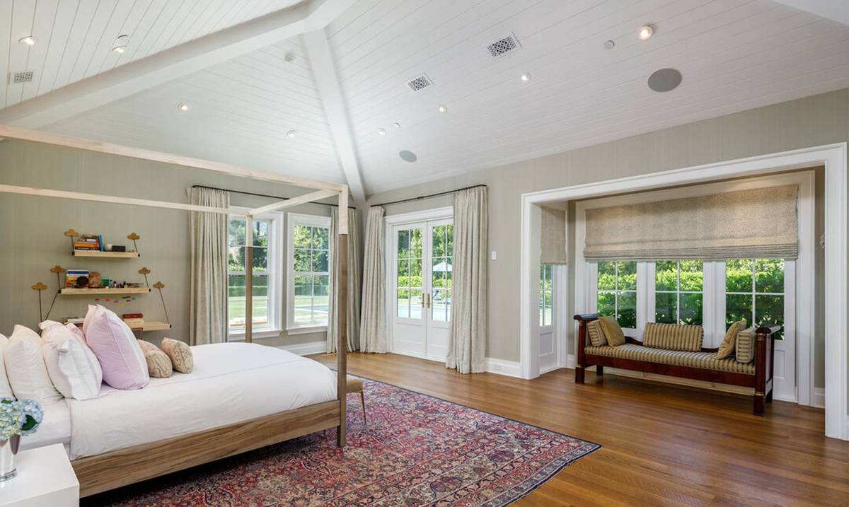 Hlavní ložnice má strop sahající až pod sedlovou střechu s valbou