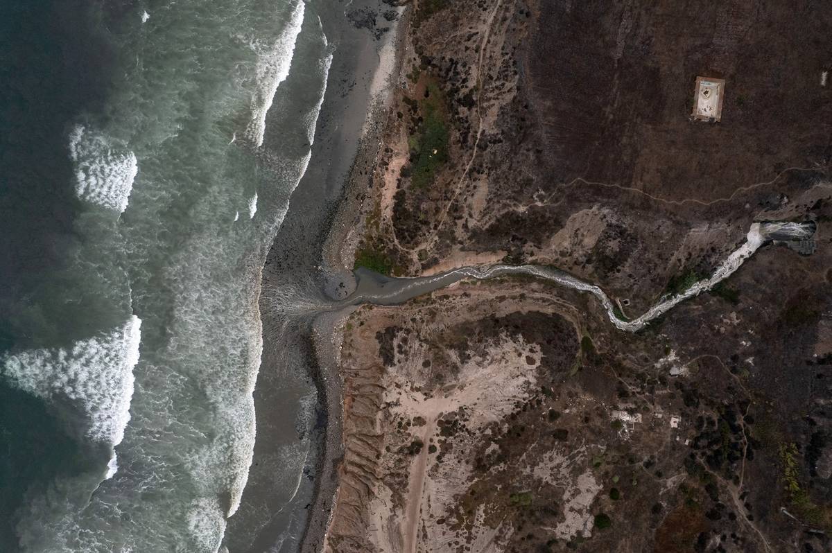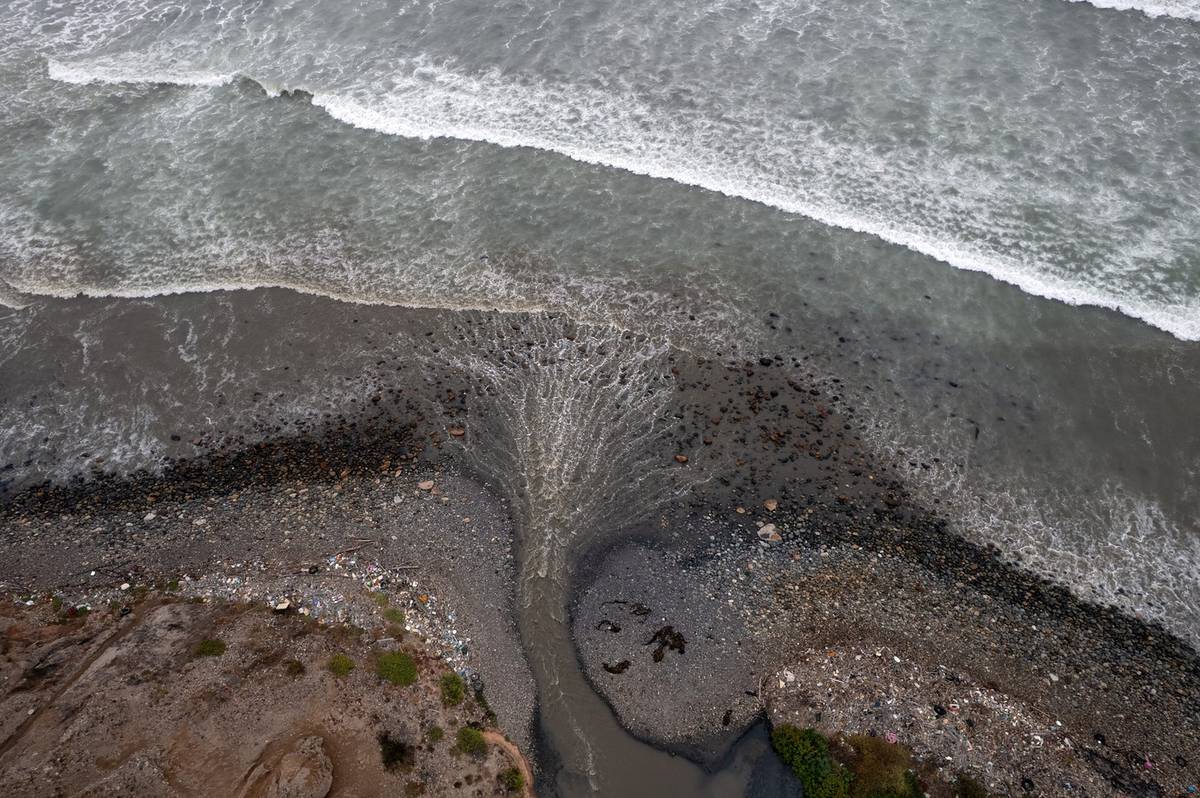 Navzdory práci čistírny odpadních vod nevidí obyvatelé mexické Tijuany žádný rozdíl v kvalitě vody stejnojmenné řeky. „Nic se nezměnilo. Zápach je intenzivní,“ říká jeden z místních Marino Castro. „Voda je hnědá a zakalená.“ (Řeka s vyčištěnými odpadními vodami, která teče do Tichého oceánu poblíž Real Del Mar v mexickém státě Baja California v Mexiku, 12. srpna.)