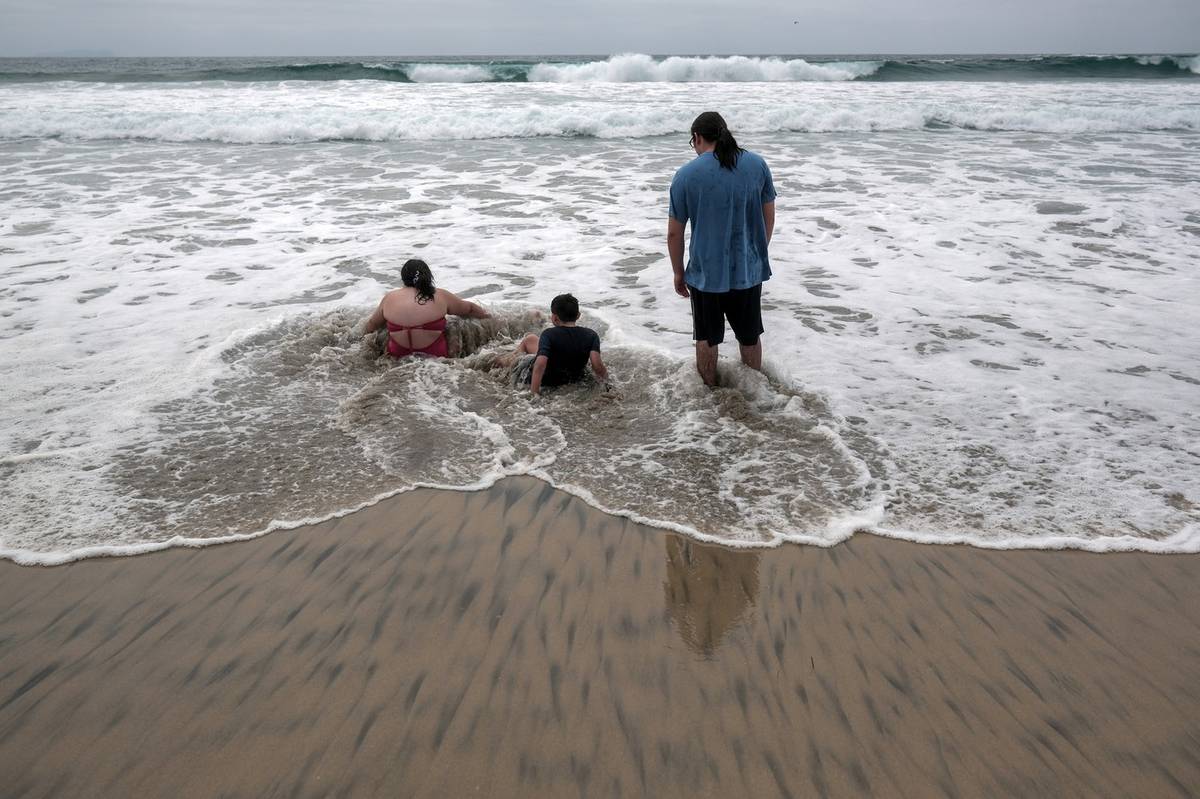 Jiné výzkumy ukázaly, že aerosol z řeky Tijuana obsahuje chemikálie, včetně vedlejších produktů léčiv, sloučenin z pneumatik a produktů osobní hygieny. Obyvatelé říkají, že se také obávají znečišťujících látek vypouštěných z továren v Mexiku. (Lidé na pláži v Playas de Tijuana, 12. srpna.)