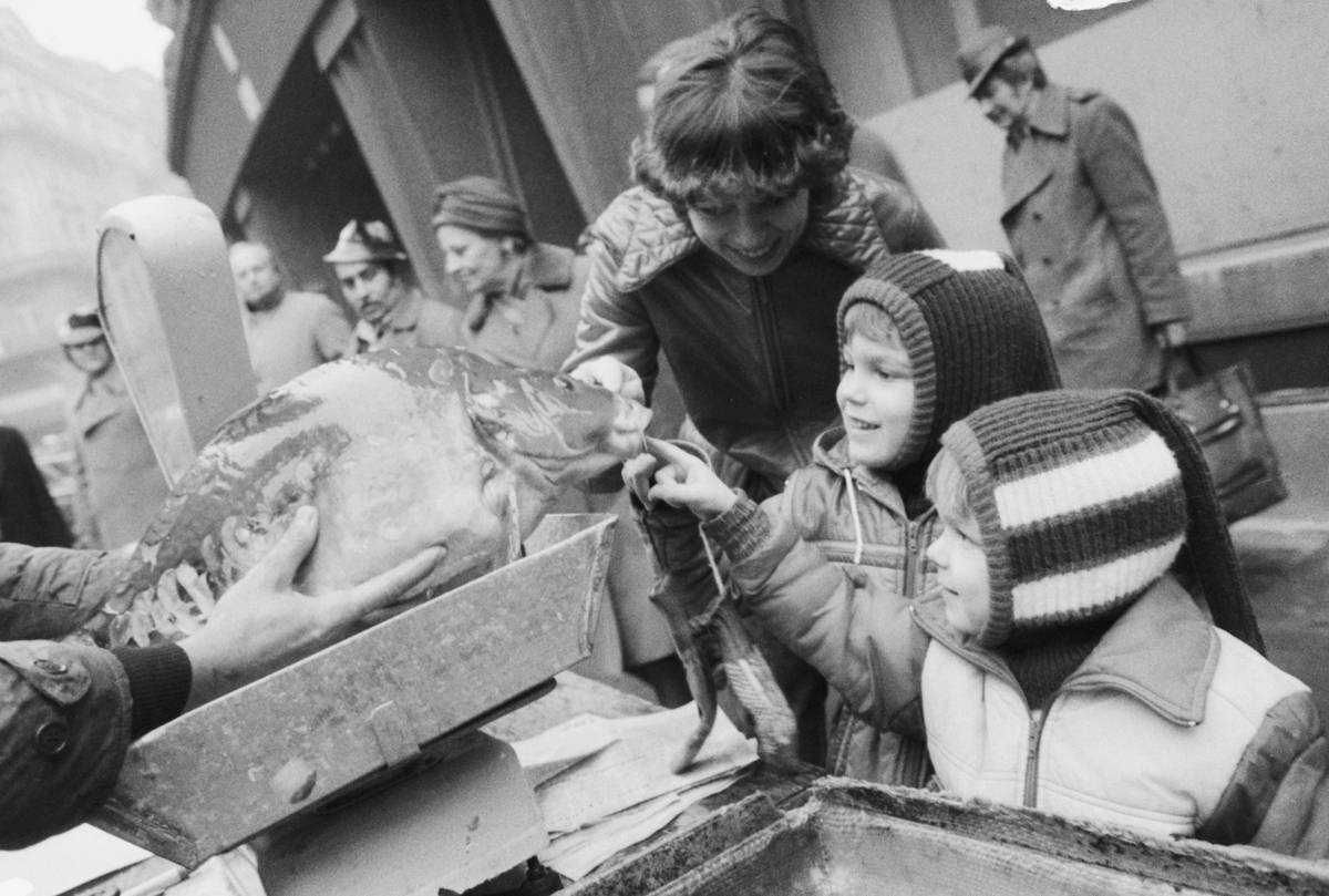Rok 1983 a prodej vánočních kaprů v Praze.