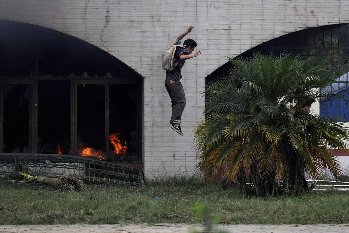 Ulice Katmándú zaplnily davy demonstrantů, kteří nesli transparenty se silnými hesly jako „už toho bylo dost“ či „konec korupce“. Na snímku se tisíce protestujících pokusily dostat do budovy zákonodárného sboru.
