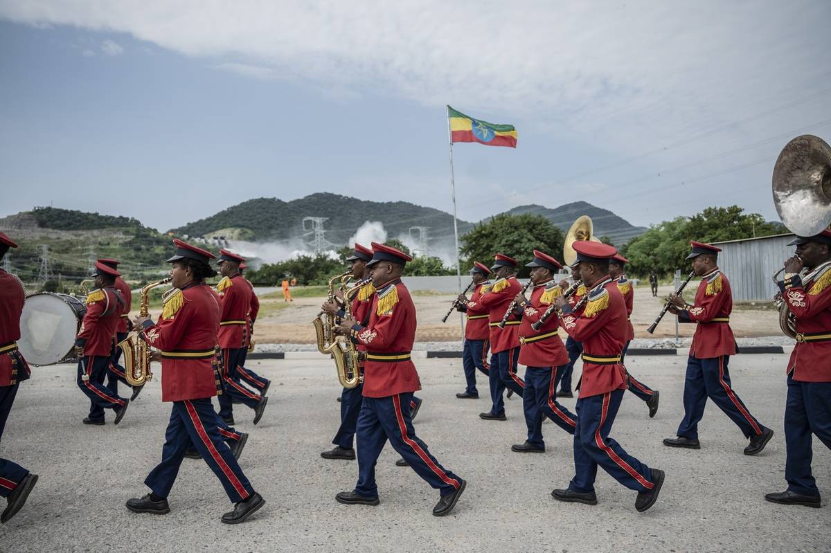 (Orchestr během slavnostního otevření v etiopské Gubě, 9. září 2025.)