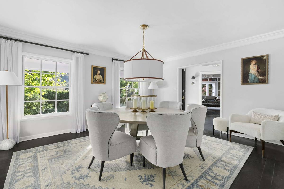 V jídelně je kulatý stůl, kolem nějž se pohodlně vejde šest stolovníků.