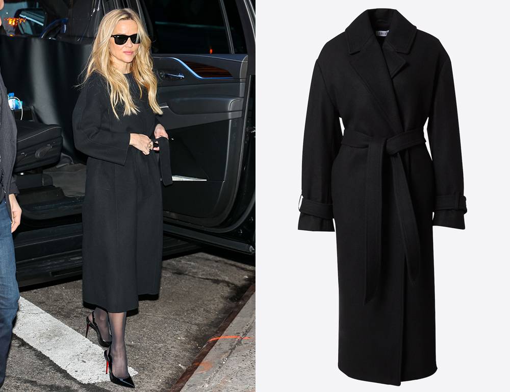 Až příště pronesete, že vám kvůli menší postavě delší kabáty nesluší, vzpomeňte si na herečku Reese Witherspoon. Se svými 156 centimetry nosí midikabáty a to, že jí tak sluší, není zásluha jen přidaných podpatků. Herečka chytře vsází na modely s páskem, které zdůrazní pas a protáhnou celou siluetu. Vpravo: Kabát Edited, 4 999 Kč, prodává About You
