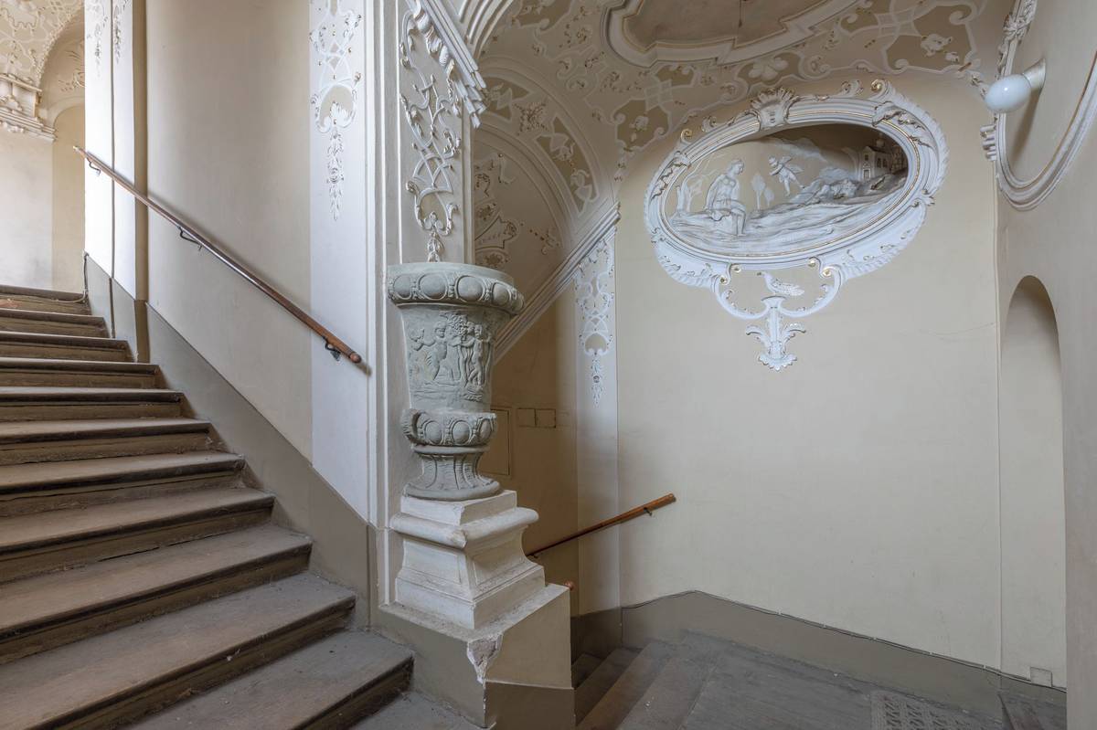 s ocelovým zábradlím pravděpodobně z druhé poloviny 19. století.