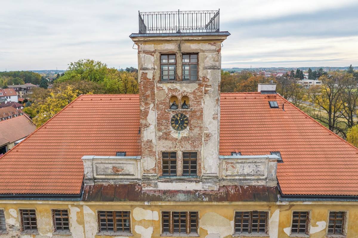 Ve věži je místnost s hodinovým strojem, na střeše věže je vyhlídková terasa