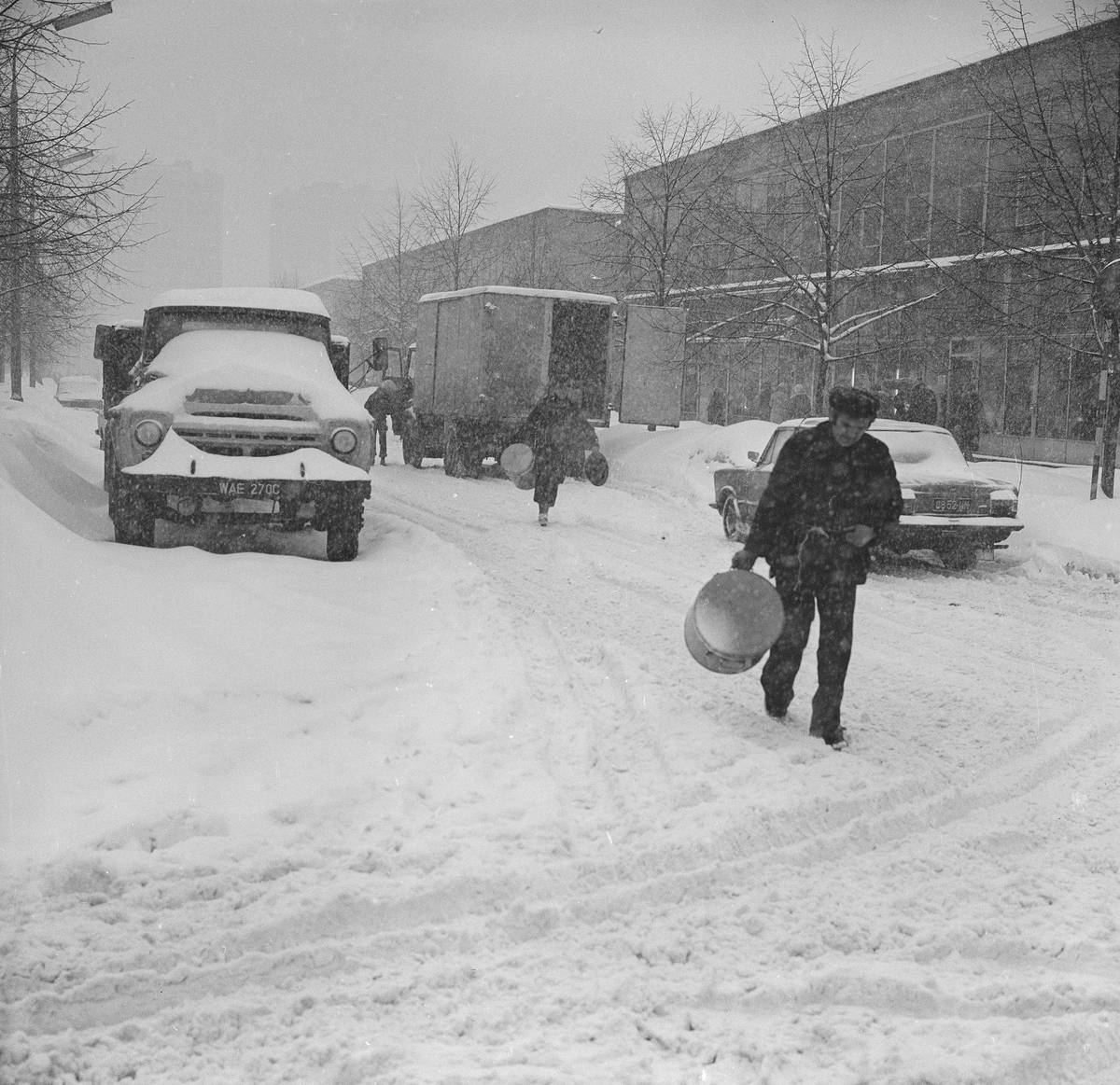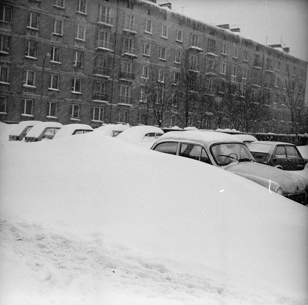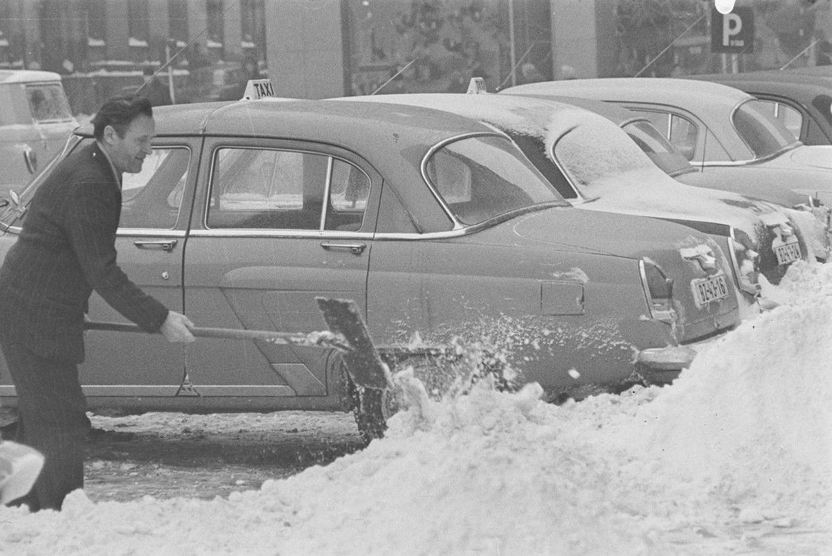 Lidé museli svá auta vyhrabávat ze sněhu ručně, rozjet se pak s takovou Volhou 21 nebyl na kluzkém povrchu žádný med.