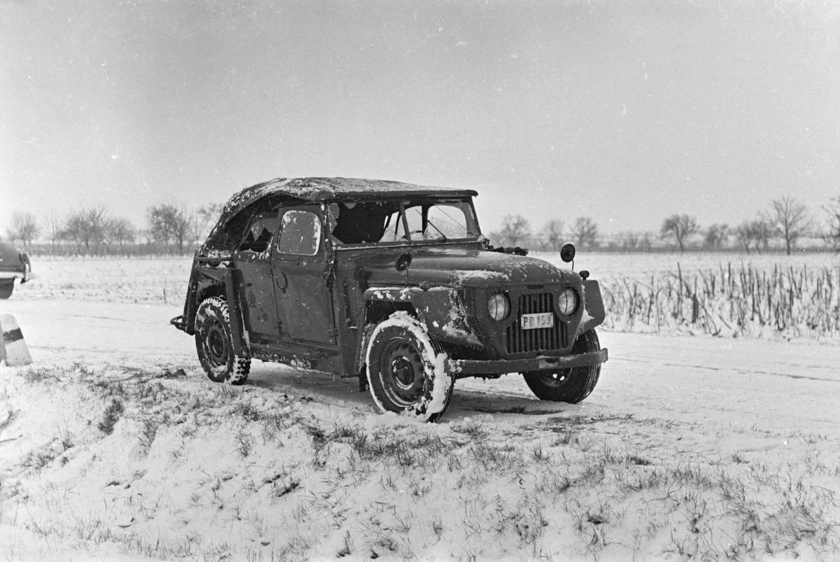 Problémy se zasněženými cestami měly i terénní automobily, které v socialistických státech mnohdy zůstaly po osvobozeneckých armádách. Toto je Dodge WC.