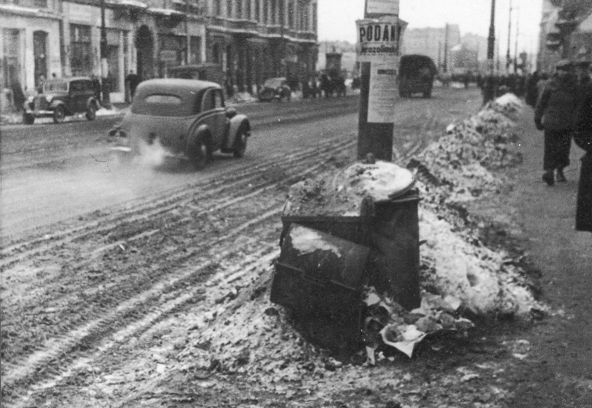 Zima roku 1947 a ulice polské Varšavy. O vzorně odklizených silnicích si tehdejší motoristé moli nechat zdát, na druhou stranu aut bylo méně a provoz mnohem méně hustý než dnes.