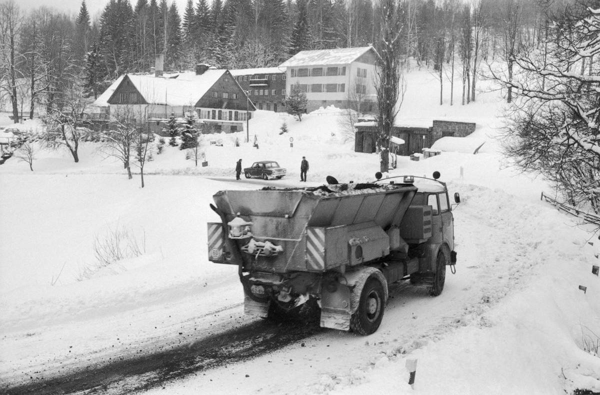 Úplně valné to nebylo ani s posypem silnic. Kvůli jeho nedostatečnosti uvázly stovky aut v prosinci 1968 na silnici mezi Prahou a Českými Budějovicemi.