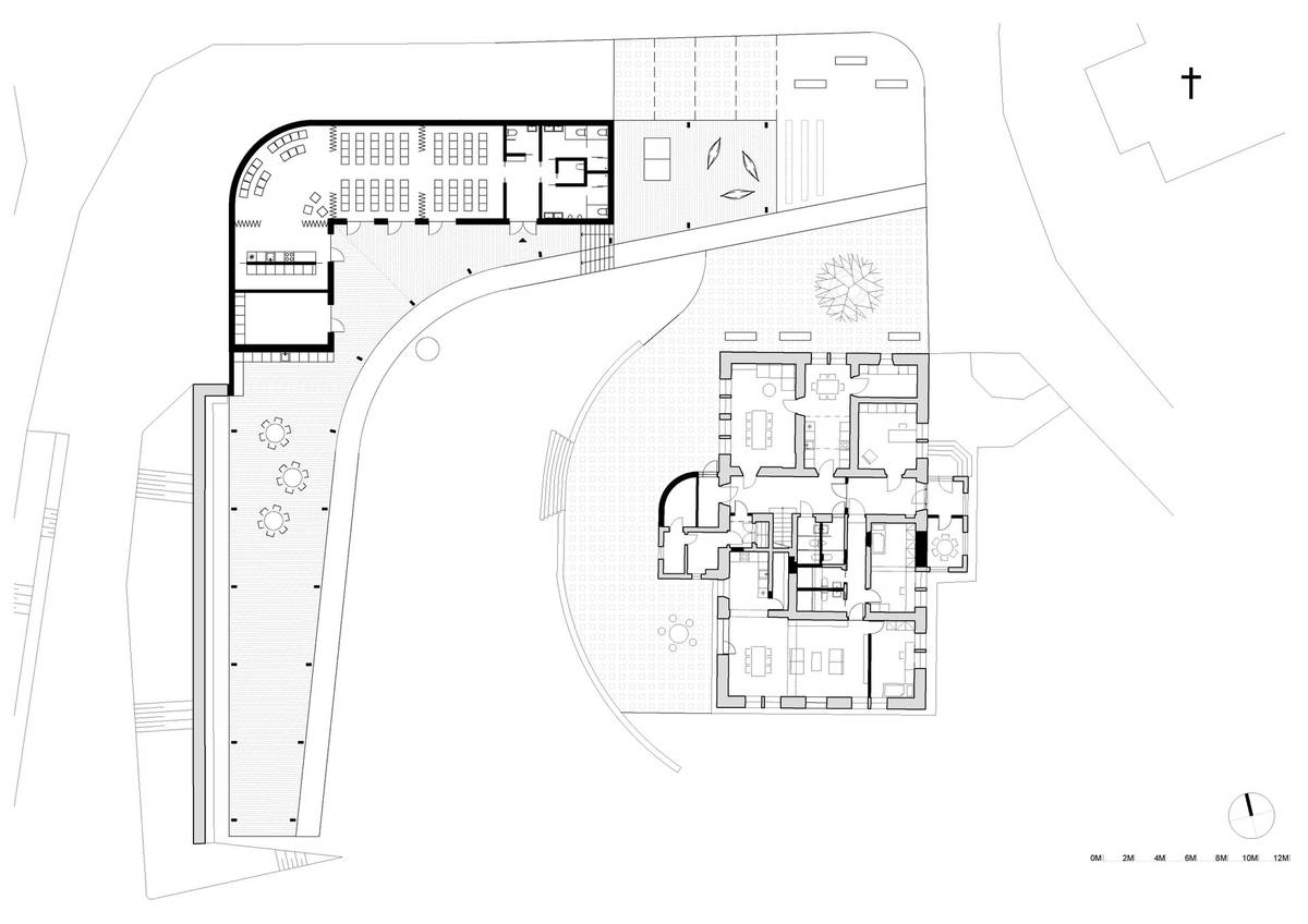 Z nákresu je patrné umístění stavby do terénu.