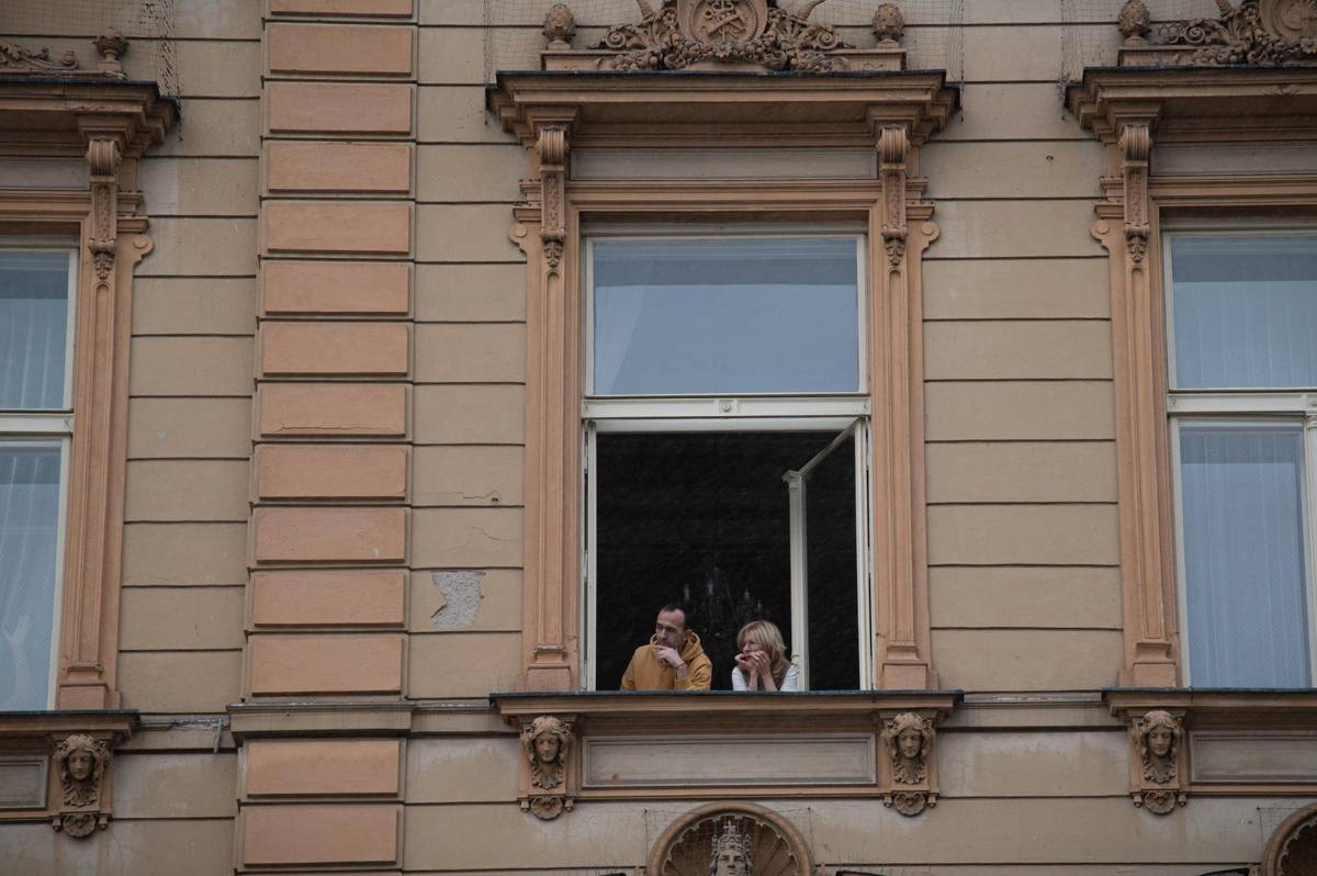 Zvědaví lidé pozorují příjezd prezidenta