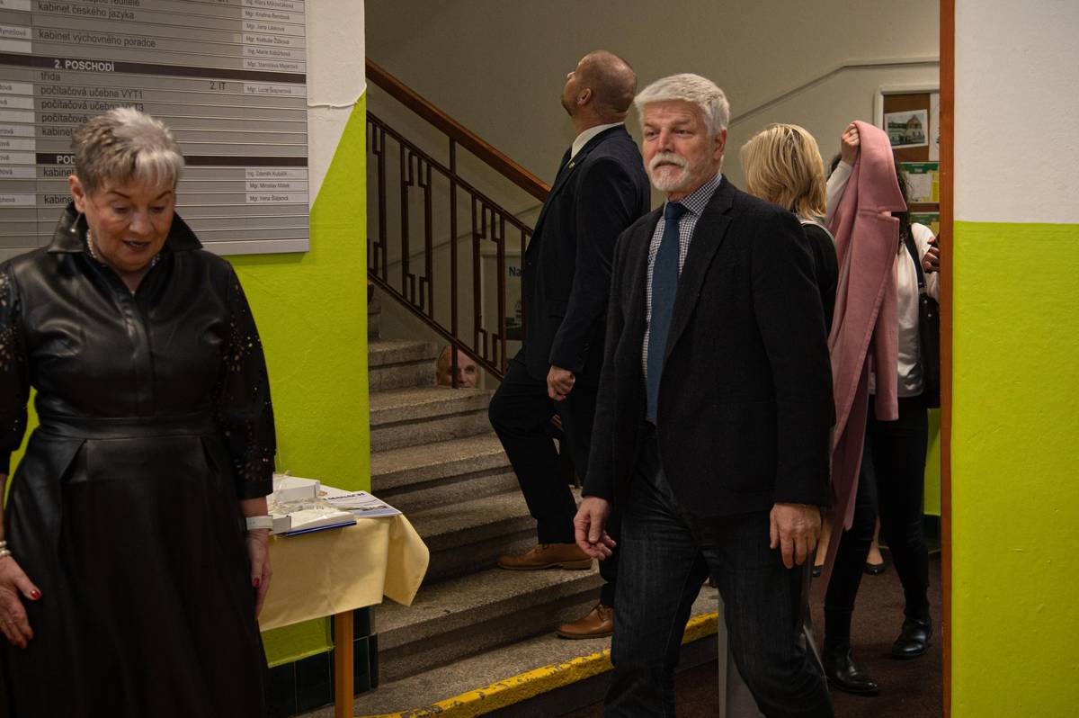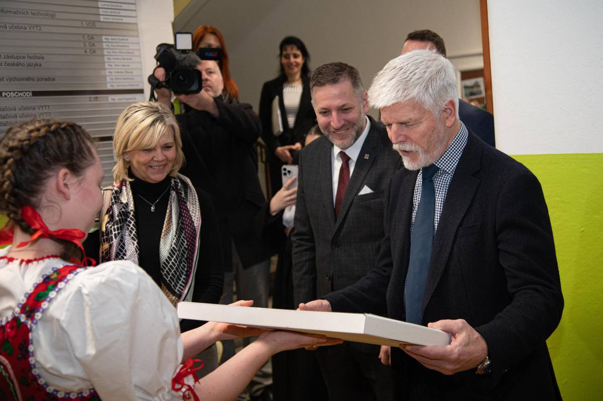 Prezident dostal přivítání v místní střední škole