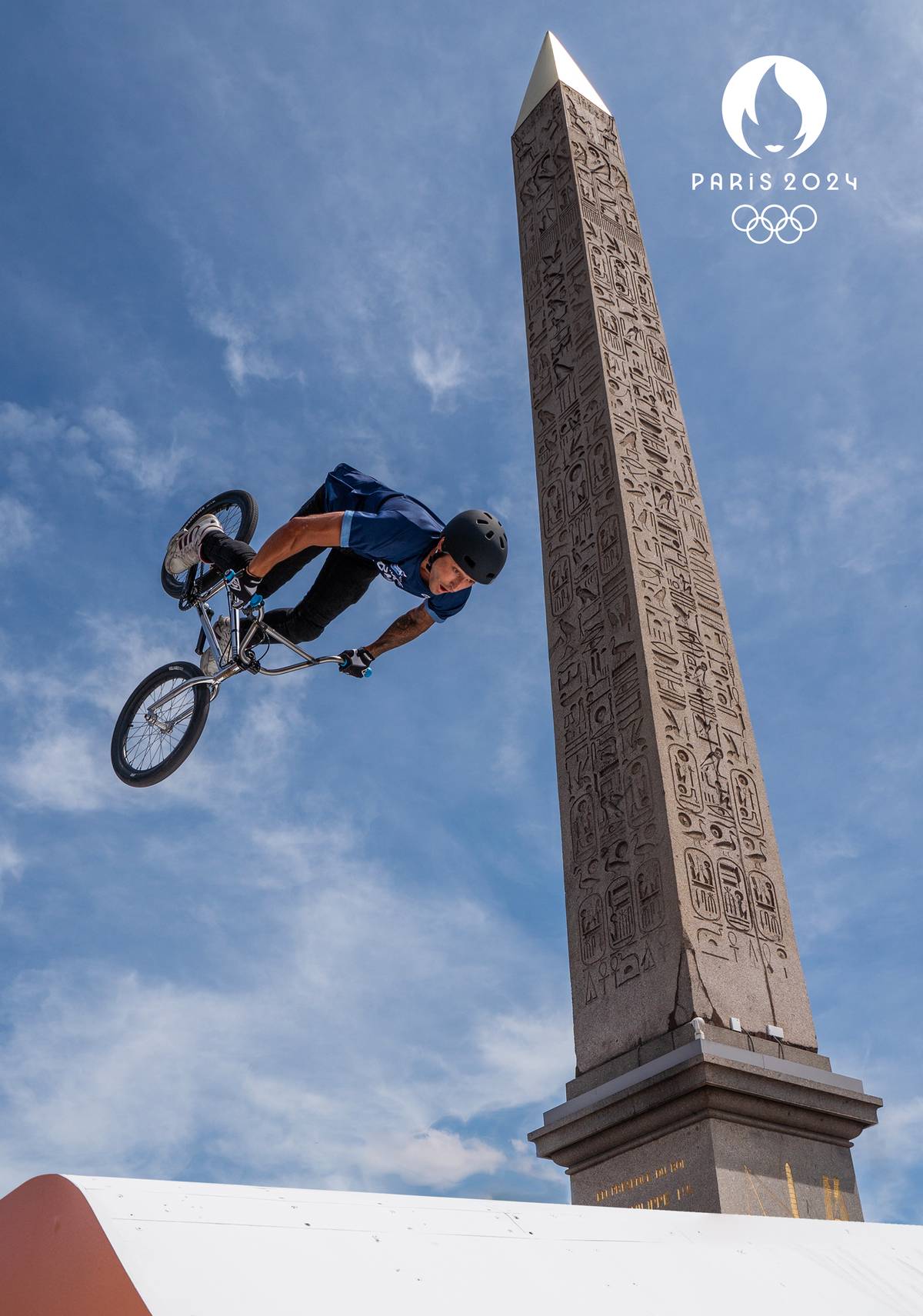 Cyklistická akrobacie nad Seinou.