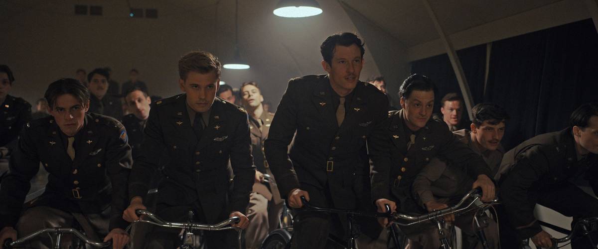Na snímku z minisérie Vládcové nebes jsou Callum Turner v roli Johna Egana a Austin Butler jako Gale Cleven.