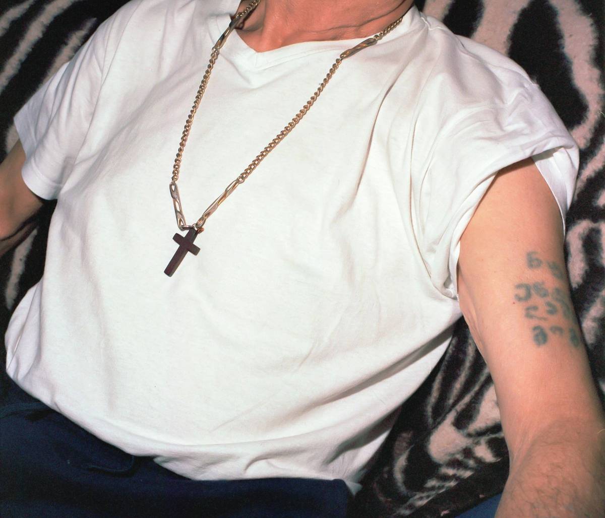 Kayin Luys (Belgie / LUCA School of Arts Sint Lukas): Tetování na dědečkově paži - Nevěř hezkým dívkám (ukázka ze série snímků, která se zabývá autorovým vztahem k příbuzným a nové rodině). Finalista v kategorii Studenti.