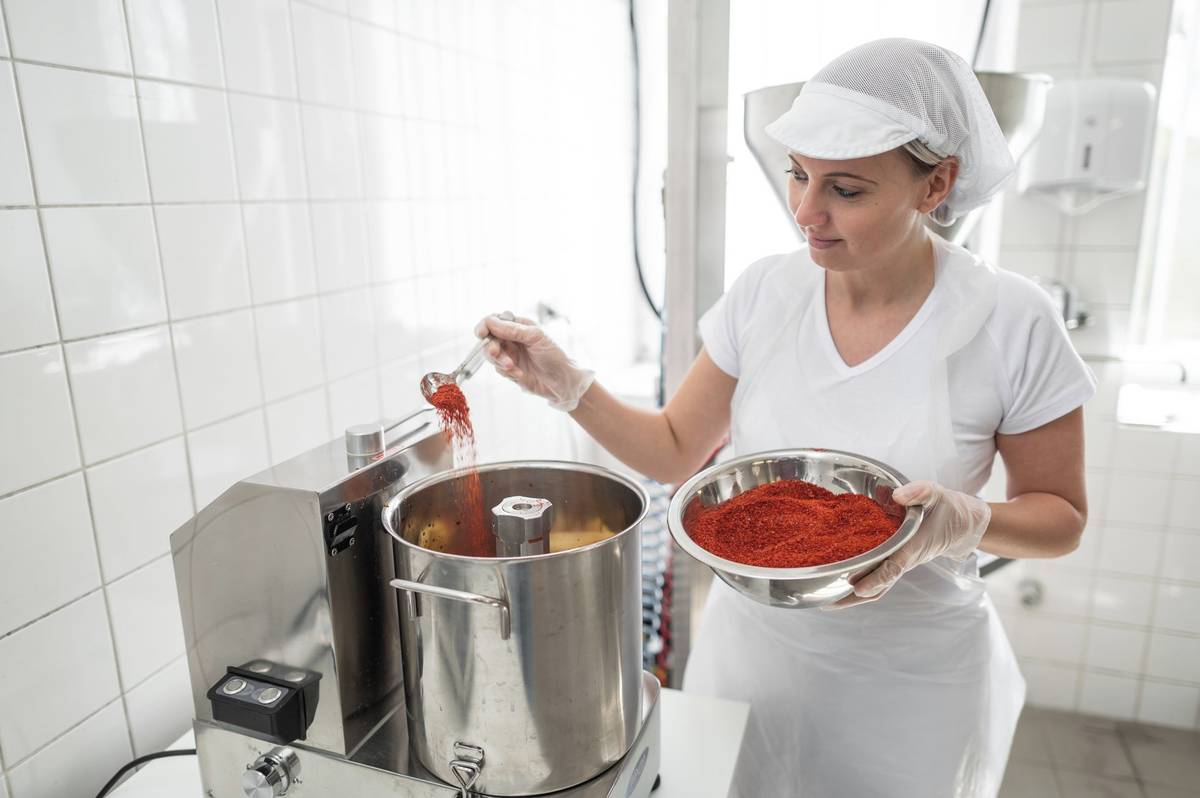 Zatímco povídá, v pozadí hraje z rádia píseň Málokdo ví od Hany Zagorové, které má puštěné asi desítka zaměstnanců. V bílých pláštích připravují produkty, které ročně udělají obrat kolem třiceti milionů korun.