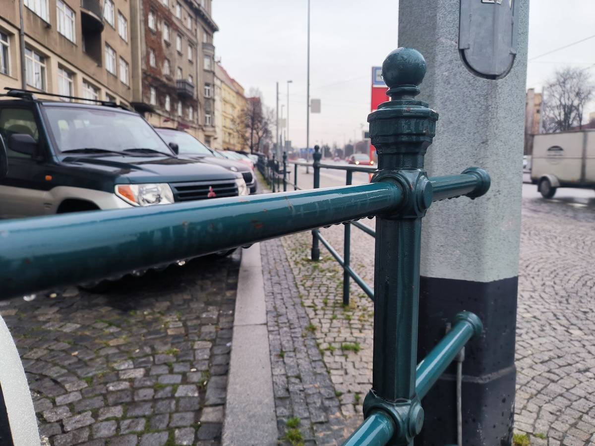 Přitom na druhé straně ulice je docela pěkné zábradlí.
