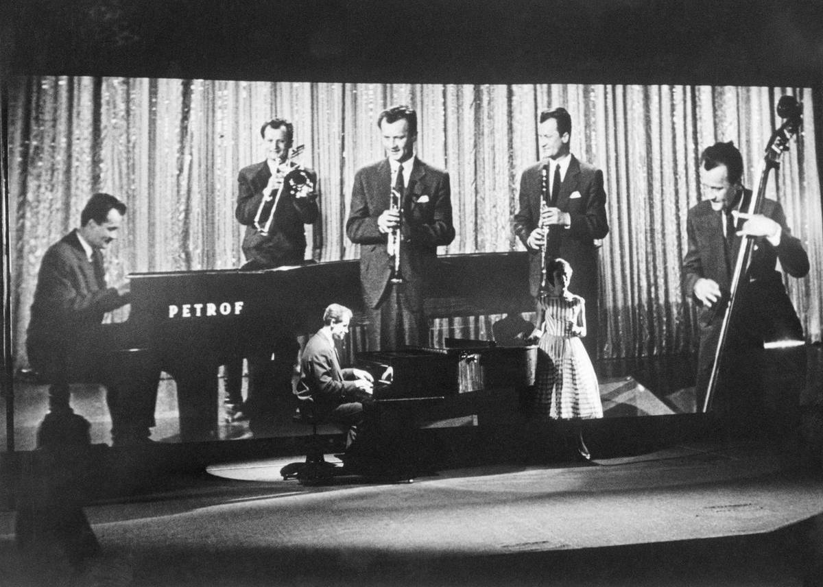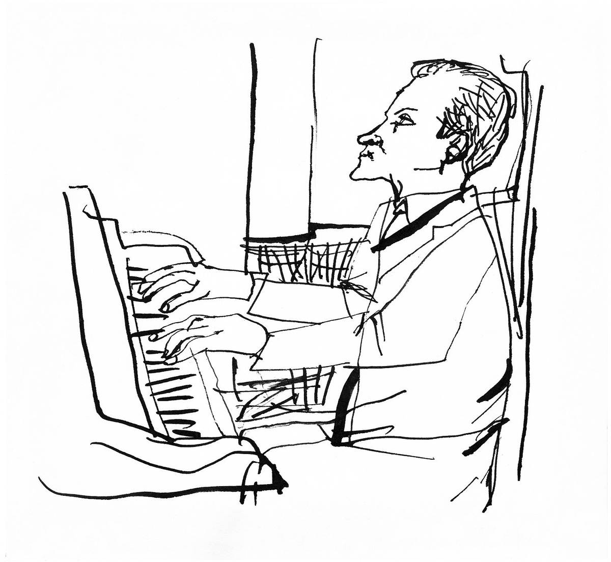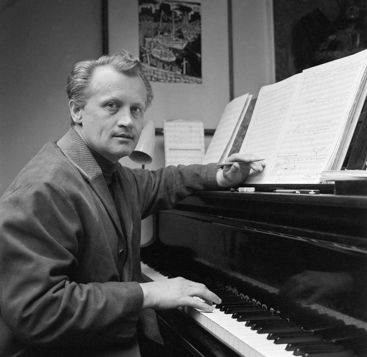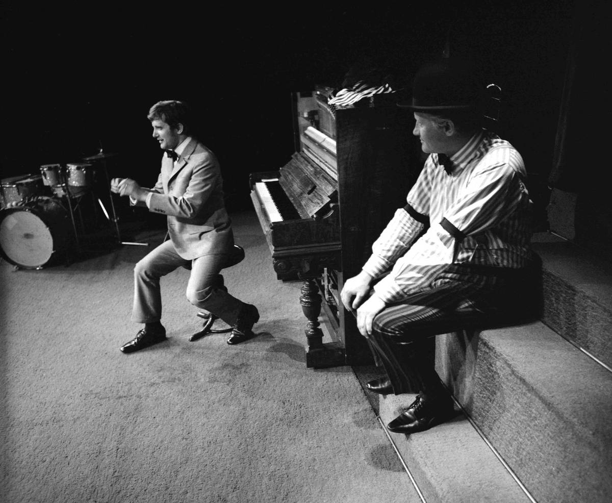 "Šlitr nebyl vůbec zpěvák. Já taky ne. Já přece jenom trošku jo, ale Jiří byl naprosto nezpěvácký typ. A tím to ohromně vyhrával, protože zpěváků byla fůra, ale takový Šlitr byl jenom jeden," vzpomínal Suchý. Na snímku je Šlitr u klavíru v roce 1965.