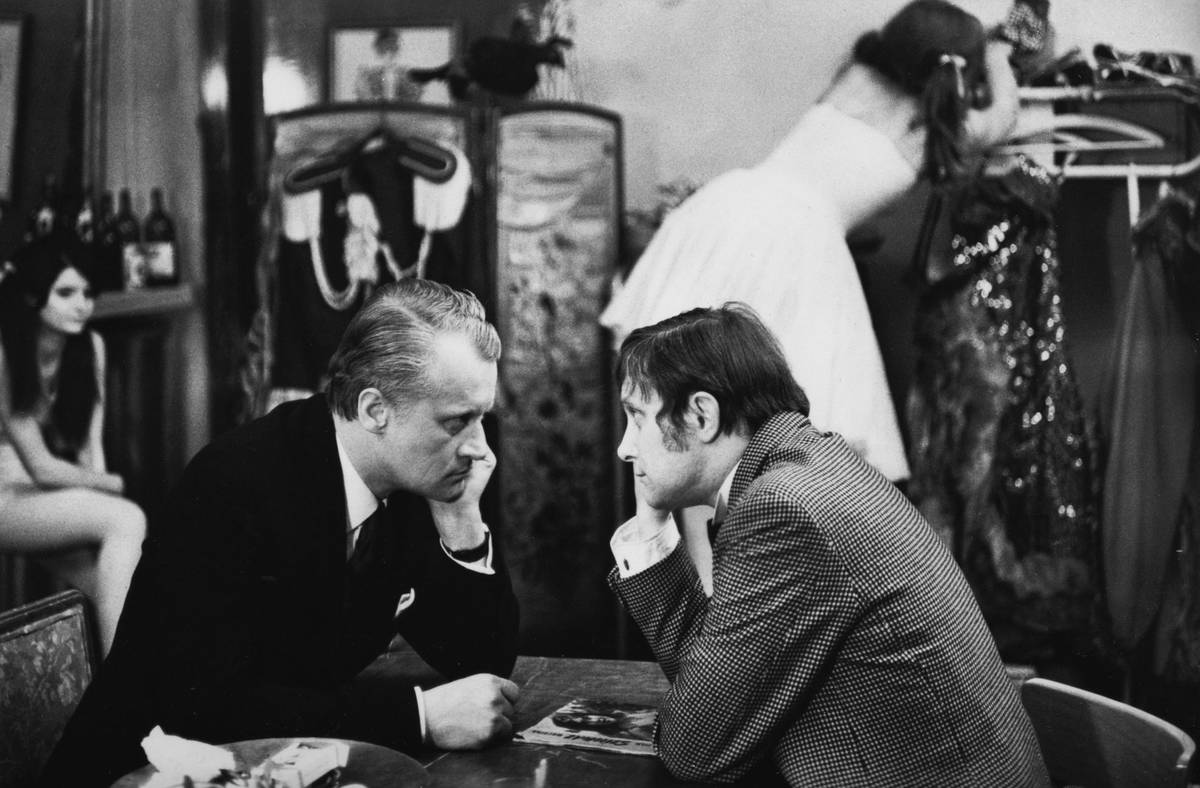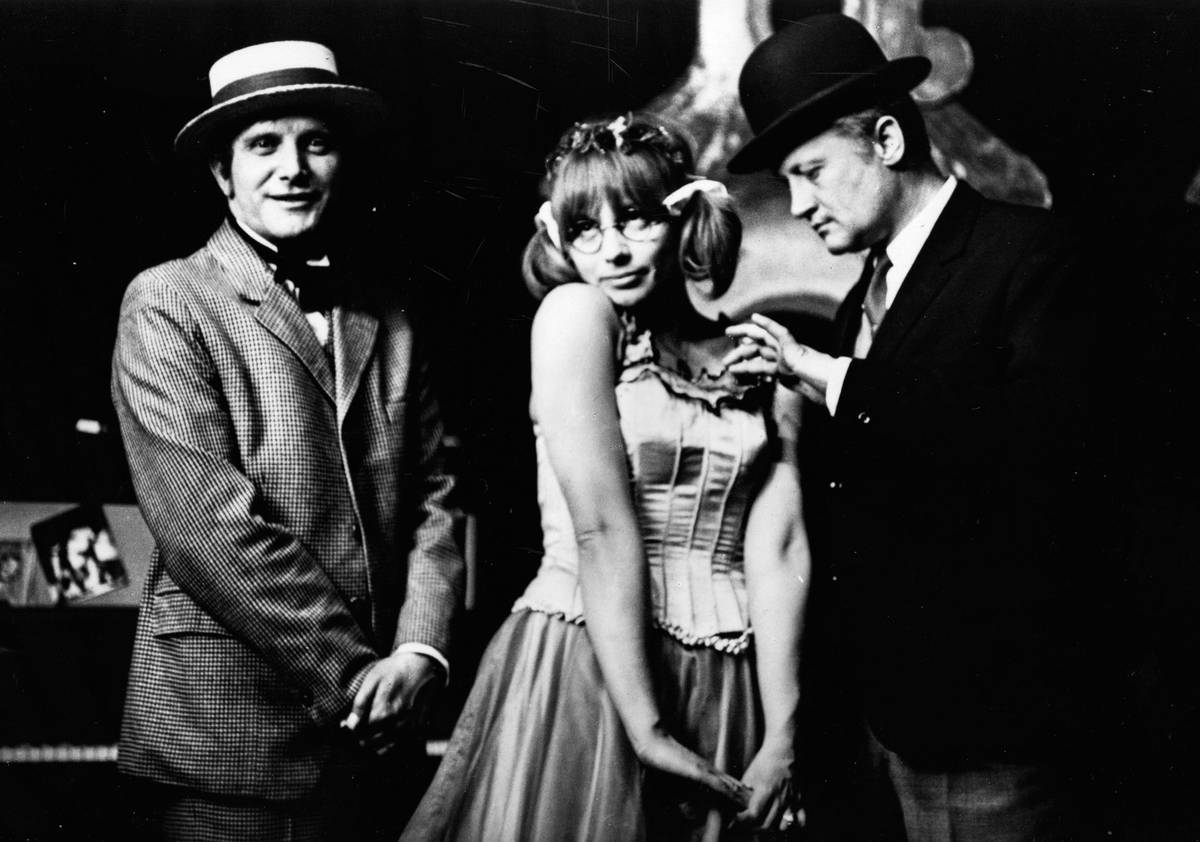 Po mnoha slavných hrách v Semaforu si oba v roce 1966 zkusili samostatné programy - Suchý Benefici a Šlitr Ďábla z Vinohrad, hodně bigbítový a méně intelektuální projekt. Na snímku jsou Šlitr a Eva Pilarová v Dobře placené procházce z června 1965.