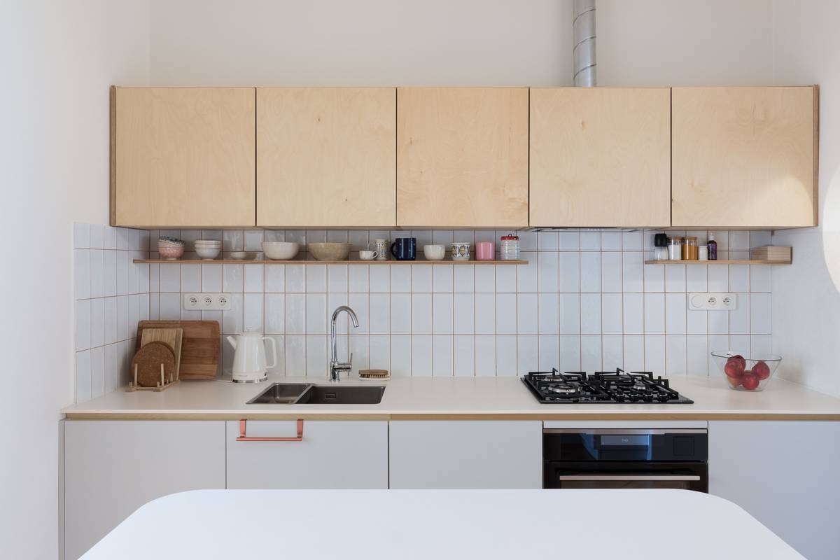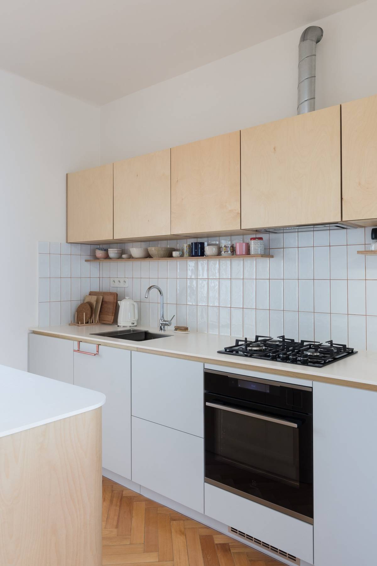 Zařízení kuchyně je jednoduché a odkazuje ke stylu celého interiéru