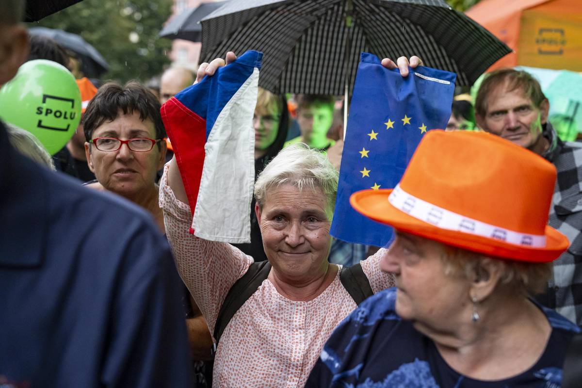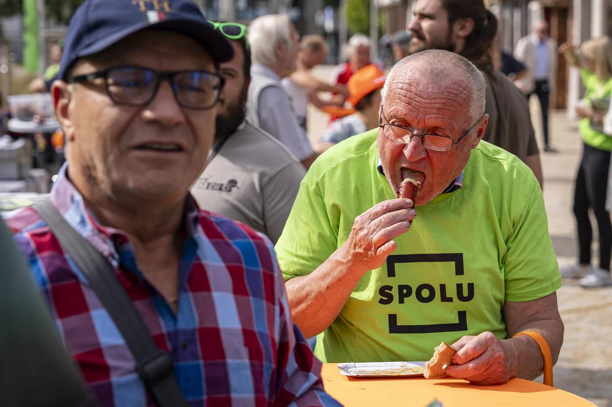 Na mítink koalice Spolu v Ústí nad Labem dorazili příznivci i odpůrci současné vlády.