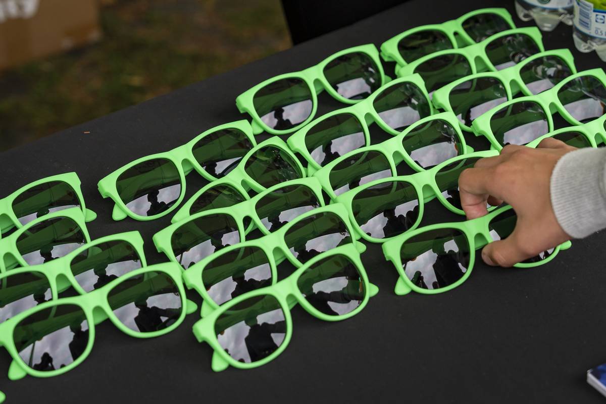 Koalice Spolu sází na svítivě zelenou a oranžovou. K dostání jsou kloboučky, brýle, placky či trika.