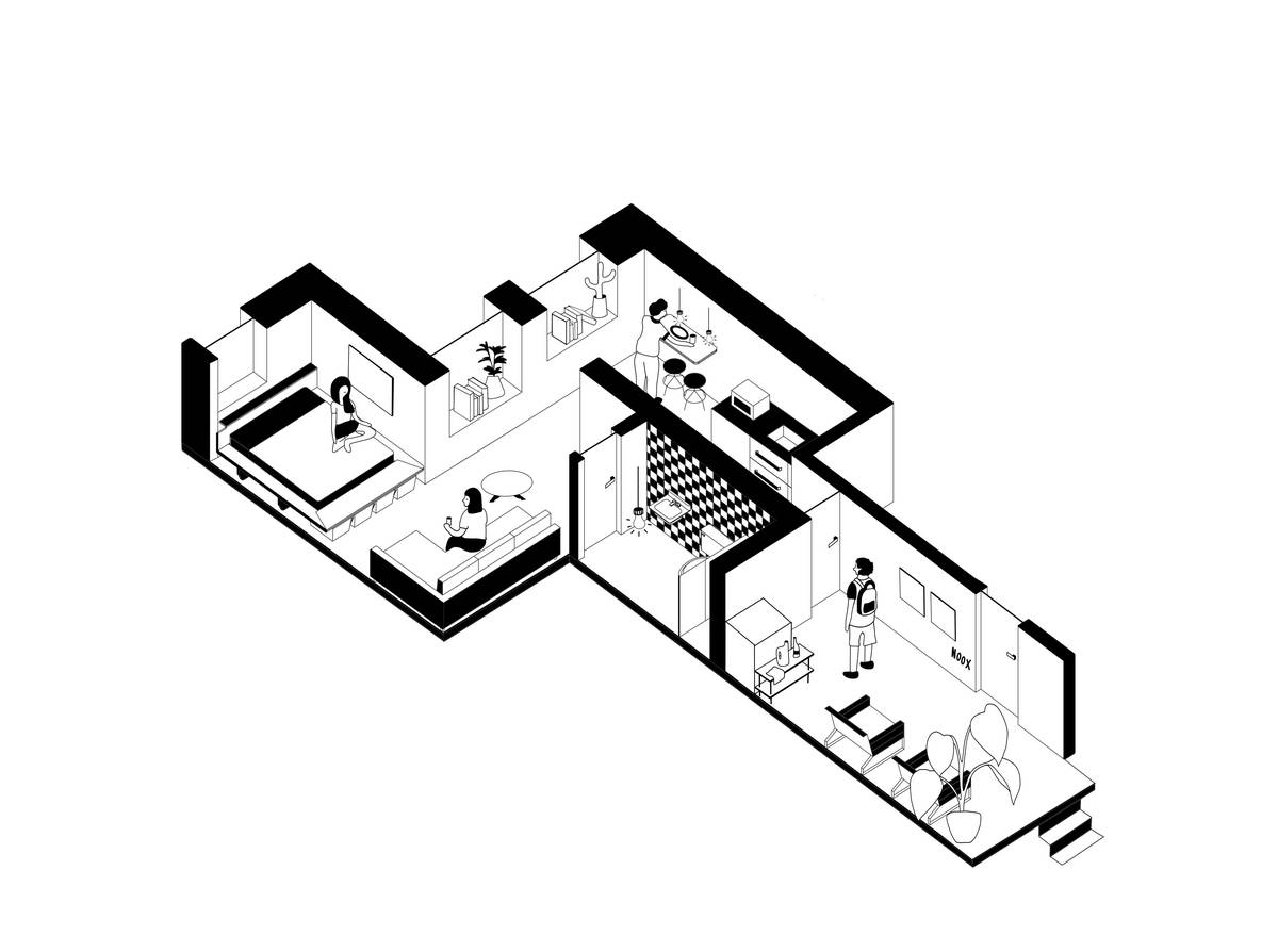 Interiéru pokoje M vévodí retro prvky, které jsou ale poskládané velmi soudobým způsobem.