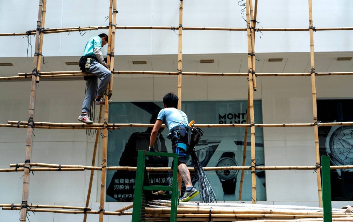 Při stavbě mrakodrapů se v Hongkongu bez bambusu neobejdou. Tradiční lešenářská technika získala i mezinárodní uznání