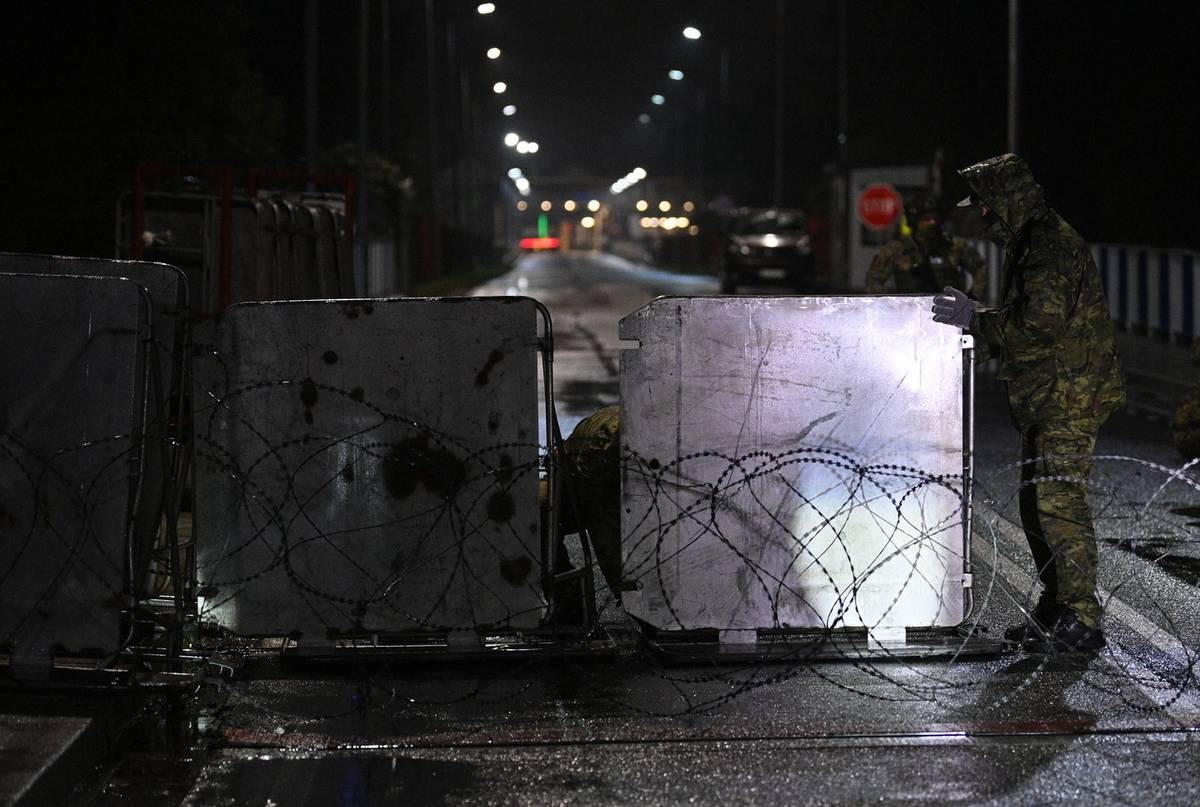 Polsko ve čtvrtek o půlnoci uzavřelo svou hranici s Běloruskem. (Na snímku polští pohraničníci staví zátarasy.)