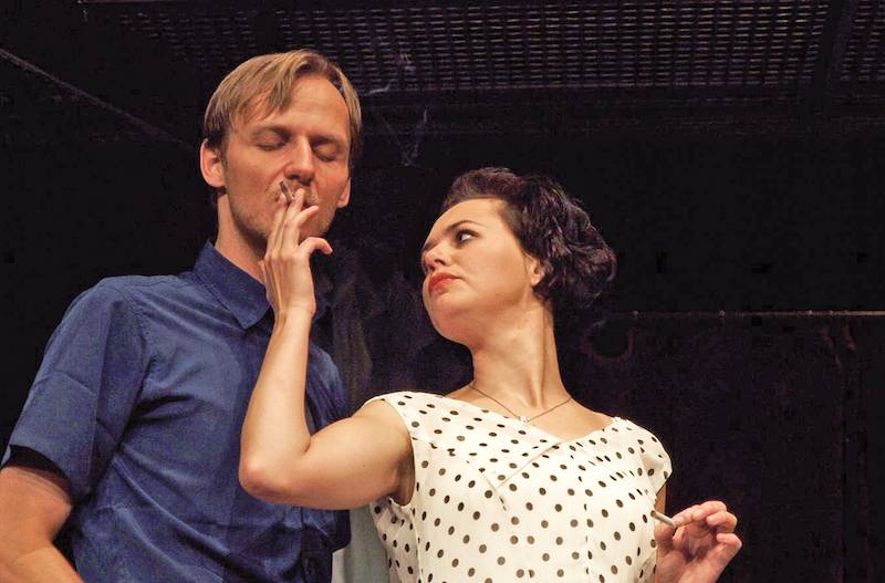 Martin Hofmann a Jitka Čvančarová na jevišti Divadla v Celetné. Ženskou roli nyní po ní hrají Eliška Hanušová či Sára Rychlíková.