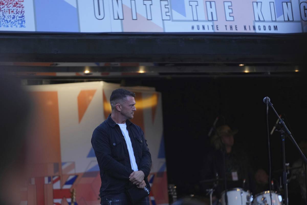 Svolavatel akce Tommy Robinson (na fotce)