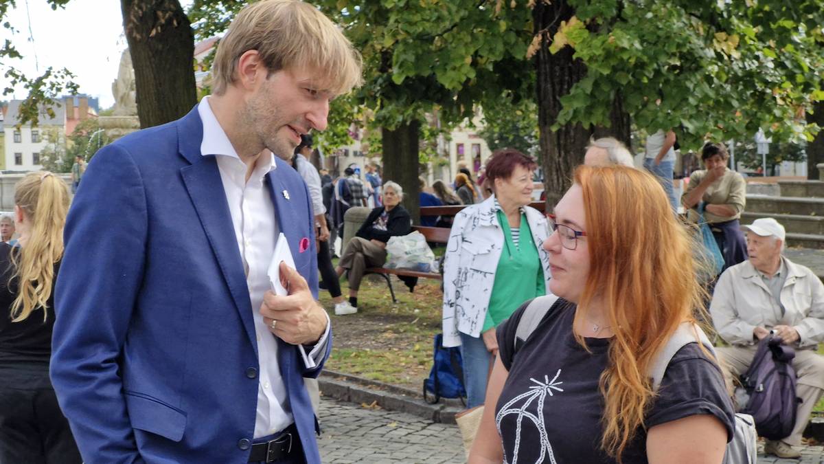 Předvolební mítink hnutí ANO v Jihlavě. Na snímku jihočeský lídr Adam Vojtěch.