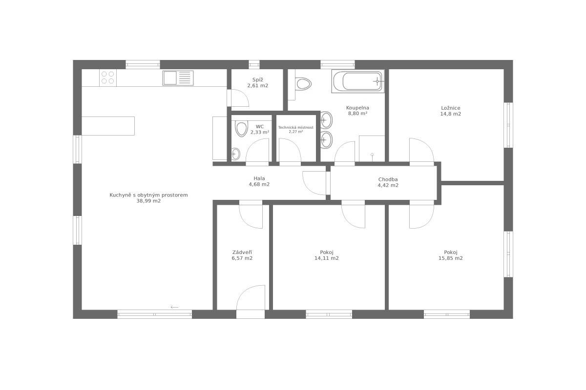Ve velké koupelně vyměnili WC se sprchou a podobné drobnosti, což se oproti původnímu projektu jednoduše doladilo.