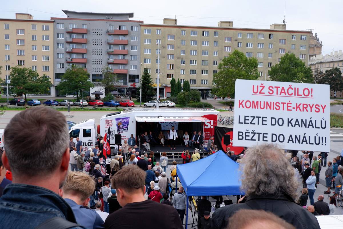 Na ochozu naproti pódiu se sešly desítky odpůrců.
