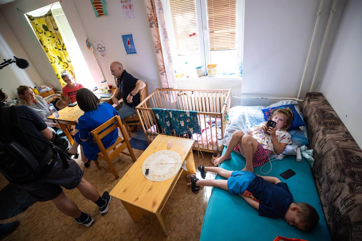 ...děti paní Kováčové si v tichosti hrají na postelích. Prostor, který Kováčovi v azylovém domě obývají, sestává z jediné místnosti.